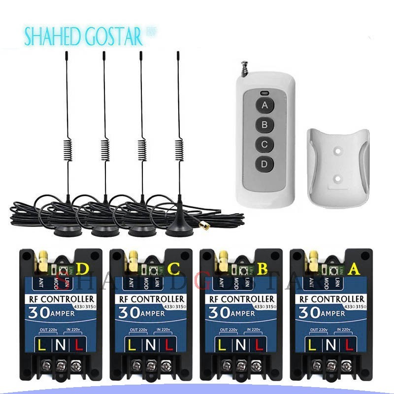 کنترل ریموتی 4 کانال با 4 گیرنده مجزا 30 آمپری